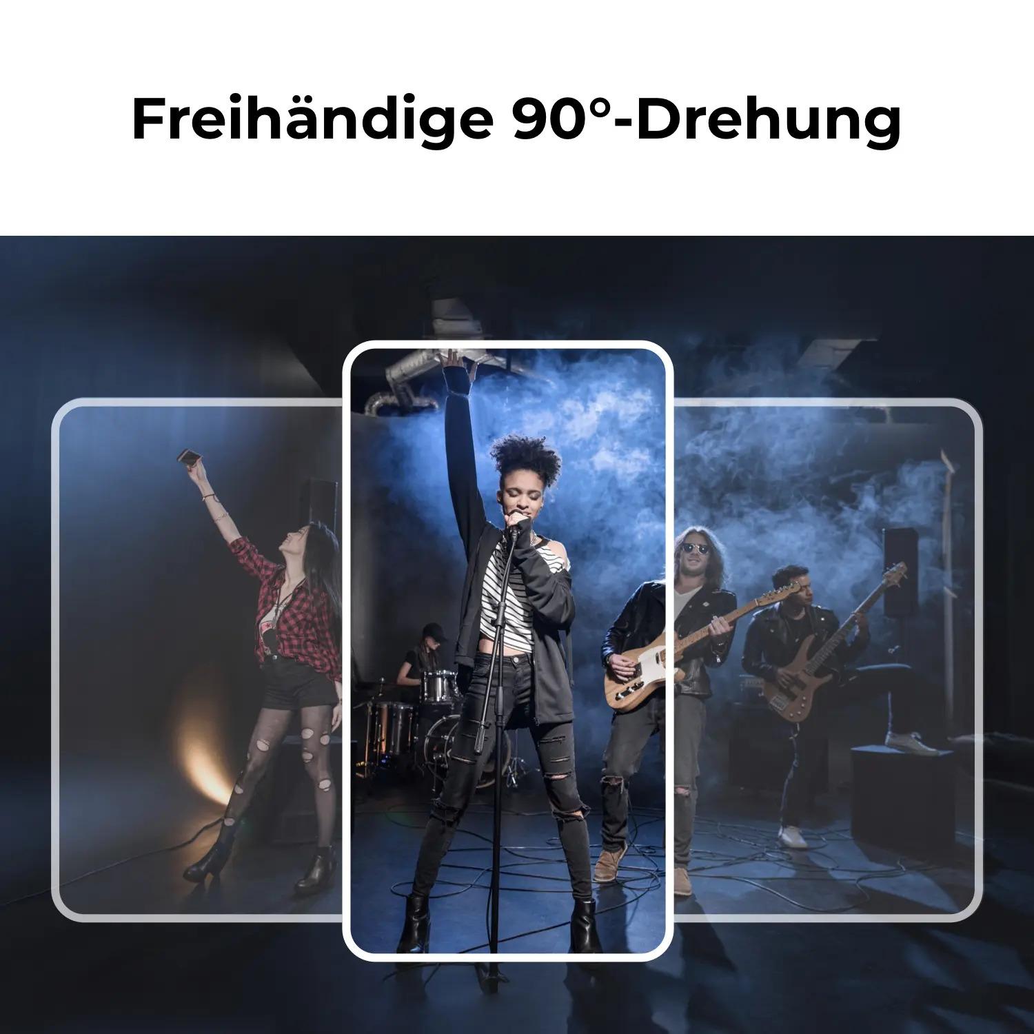 Freihändige 90°-Rotation: Wechseln Sie mühelos zwischen Hoch- und Querformat, ohne manuelle Anpassungen, dank des innovativen R-Achsen-Gimbalsystems.